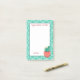 Ce pavé de notes Post-it® a un look sud-ouest avec un plante cactus, dans le coin inférieur droit. dans l'arrière - plan il y a un motif turquoise et le texte dit, "Le bonheur fleurit de l'intérieur", qui peut être customisé. Il y a aussi un espace en bas que l'on peut customiser.