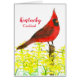 Une carte de voeux vierge ornée d'un cardinal rouge vif perché sur un poteau de clôture dans un carré de verge jaune vif dessiné à l'encre et peint à l'aquarelle. Inspiré par l'oiseau d'Etat et la fleur d'Etat du Kentucky. Vous pouvez modifier ou supprimer le texte selon vos besoins.