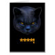 Salutations ou cartes d'anniversaire. Une photographie renfrognée et grincheuse d'un chat noir croisé avec les yeux jaunes effrayants sur un arrière - plan noir. Perfectionnez pour une fille de l'adolescence, adolescents grincheux ? Sûrement pas ! Une belle carte croisée de chat pour l'amoureux des chats de l'adolescence. Une photo effrayante de chat d'obscurité et de couvée, il fait la mine à vous ! Il n'est pas grincheux, il est croix ! D'une photographie originale de chat de chat croisé par Paul Stickland. ©Paul Stickland