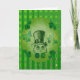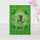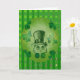 Carte de voeux avec de St Patrick de chat et de shamrocks (ou quatre de feuille trèfles) du jour le dessin. Dégage un cru ou un rétro regard avec le vert. Le chat de bande dessinée a le casquette de St Patty. Motif vert d'art de fractale à l'arrière-plan.