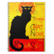 Notebook mit Théophile Alexandre Steinlens Poster Le Chat Noir (1896). Eine schöne schwarze Katze sitzt neben französischem Text und wirbt für eine Kabarett-Tour. Ein großartiges Geschenk für Fans Vintager Kunst und Jugendstil.