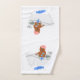 Cet ensemble de serviette a mon image de bande dessinée d'un chat dans un casquette de douche, prenant un bain. Elle a une barre de savon dans une main et d'une éponge dans l'autre.