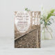 Rustic Country Railroad Tracks Wedding Invitations avec un cadre élégant autour du libellé de la faire-part de mariage dans le coin supérieur et une scène paysagère sereine avec des voies ferrées traversant des arbres dans une forêt. C'est très bien pour les mariages campagnards.