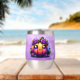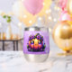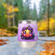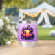 Un adorable kawaii chibi citrouille orange avec des fleurs violettes dessus Happy Halloween tonitruante personnalisée.