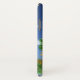 Quatre saisons apparaissent sur un arbre solitaire debout dans une prairie herbacée. Les branches supérieures sont nues et recouvertes de neige, laissant place aux fleurs roses, qui se transforment en feuilles vert foncé, qui tournent orange et or et tombent au sol. Au milieu des feuilles d'automne sur le sol sont des fleurs de printemps bleues et de la neige fondue.