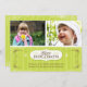 Cette carte de voeux plate de vert de chaux est sûre de se tenir entre d'autres salutations de vacances. Un arrière - plan rayé chartreuse lumineux sert à accentuer un panneau ornemental décoratif contenant bonnes fêtes le message accentué avec les ornements calligraphiques. Les flocons de neige se reposent sans compter que le panneau avec les rendus lâches de la portion de houx en tant qu'éléments faisants le coin. Ajoutez deux de vos propres photos ci-dessus et customisez le texte ci-dessous. Disponible dans des couleurs alternatives avec les produits assortis.