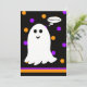 Une fête d'anniversaire d'Halloween mérite une grande Invitation d'Halloween et ce fantôme amical entouré de pois de couleur d'Halloween correspond à la note. Copyright henishouseo