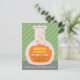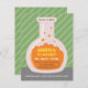 Ceci badine des utilisations d'invitation de fête d'anniversaire de la science le flacon rond de chimie de la science avec le liquide orange de bouillonnement comme base de la conception où vous pouvez personnaliser les divers modèles des textes sur le flacon. Arrière - plan des rayures inclinées. La palette de couleur du jaune et du vert est la conception neutre de genre qui est grande pour des garçons et des filles d'anniversaire.