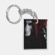 Un crâne masqué porté avec une cape à capuchon noir et une main laquée noire vous invitant à venir. Un rideau de marron sert de toile de fond à cette photo. Il est disponible sur différents styles et tailles de porte - clé.
