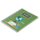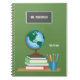 Caractéristiques de conception ce de carnet un graphique du bureau d'un professeur comprenant un globe, des livres et des crayons. L'arrière - plan est vert et peut être customisé à n'importe quelle couleur. Le texte fait sur commande vous permet d'ajouter le nom et la catégorie d'un professeur.