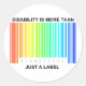 Le handicap est plus qu'un étiquette. Un code barre arc-en-ciel représente la diversité des personnes handicapées. Un étiquette d'incapacité - le manque d'une condition médicale ou un état de différence auto-contraignant ?