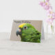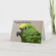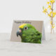 Carte de voeux indiquant le joyeux anniversaire comportant le perroquet dirigé jaune d'Amazone. L'intérieur est vide pour votre propre message.