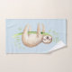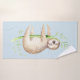Aquarelle; paresse souriante sur branche de l'arbre, arrière - plan bleu clair