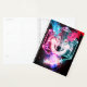 Ce décor à thème est composé d'un loup avec une fumée bleue et rose vibrante qui sort de ses yeux au-dessus d'une planète avec un spectacle de néon géométrique.