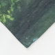 La lumière du soleil filtre à travers de grands arbres denses, projetant une lueur éclatante sur un sol forestier verdoyant parsemé de fines fleurs blanches. Le cadre serein évoque le calme et la tranquillité.