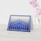 Une représentation illustrée moderne des bougies de menorah de Hanoukka. Couleur blanche et multi bleue avec le vers à l'intérieur. "Vous souhaitant Hanoukka très heureux".