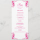 La conception moderne et élégante a imprimé les cartes fuchsia de menu de dîner de mariage damassé qui peuvent être customisées avec votre texte. Vérifiez le magasin de conception de l'industrie graphique d'autres produits qui assortissent cette conception !