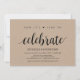Maintenant, c'est l'heure de célébrer, carte d'invitation de réception de mariage en fuite. Cette carte d'invitation sur le thème du mariage en fuite kraft rustique est parfaite pour votre réception de mariage et votre fête de célébration post-mariage. Ajoutez vos coordonnées dans une police / lettrage noir assorti.