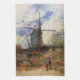 Le Moulin de la Galette von Vincent van Gogh ist ein Vintages architektonisches Post-Impressionismus mit einer Windmühle auf einem Hügel in Montmartre, Frankreich, mit einem Bauer, der sein Feld bearbeitet. Über den Künstler: Vincent Willem van Gogh war ein postimpressionistischer Maler, dessen Werk durch seine raue Schönheit, emotionale Ehrlichkeit und seine kühne Farbe besonders bemerkenswert war.