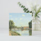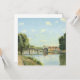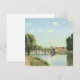Le Pont du Chemin De Fer, Pontoise. Camille Pissarro. Niedliche Federlandschaft in hellen Farben. Am Ufer eines breiten Flusses gibt es eine Straße und einen großen Baum. Es gibt eine Brücke über den Fluss. Auf der anderen Seite befindet sich eine kleine Stadt. Es gibt kleine Wolken am blauen Himmel. Reproduktion berühmter Kunstbilder im öffentlichen Bereich.