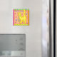 Le chat "Le Maître" est chargé d'attitude et le montre en portant un fuchsia et une cravate rayée verte. Queue et nez dans l'air, ce chat est inconscient des adorables insectes qui volent autour de lui. Les empreintes de pattes fuchsia et les points verts sont jetés aléatoirement sur un arrière - plan orange avec le texte "Le Maître". Une bordure en couleur vive entoure l'image. Le chat jaune "The Master" est l’un des 10 chats de la collection de tissus "Meow Meow" de Phyllis Dobb.