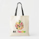 Un sac pour des professeurs d'art comportant une conception d'une pomme couverte dans les éclaboussures jaunes, noires, vertes, et roses de peinture. Le texte assorti de spraypaint en bas lit le "professeur d'art." Mettez en sac disponible dans d'autres couleurs et styles comprenant l'éléphant, l'épicerie, et les emballages d'impulsion.