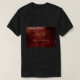 Le T-Shirt noir de cet homme a un panneau avant avec des portes symboliquement ouvertes sur les feux de l'enfer, avec le diable qui hurle à travers les flammes, et les mots - l'enfer a des frontières ouvertes.