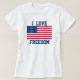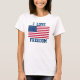 Le T-shirt de base des femmes est montré dans le blanc avec une copie patriotique de drapeau des Etats-Unis.