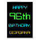 Ce design simple et amusant de carte de voeux d'anniversaire comporte un message comme "HAPPY 96th BANTHDAY, GEORGIANA!". Son apparence s'inspire du domaine de l'informatique numérique. Le nom à l'avant et le message à l'intérieur peuvent être customisés. Il pourrait être envoyé ou donné à quelqu'un qui fête son quatre-vingt-seizième anniversaire et qui peut-être travaille (ou a travaillé avant la retraite) comme administrateur de base de données, programmeur informatique, administrateur réseau, développeur logiciel, ingénieur électrique, ou qui aime autrement utiliser des ordinateurs. [~Z0000100]