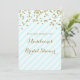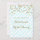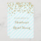 Invitations nuptiales personnalisées de douche avec le motif de confettis d'or, les rayures en pastel légères de bleu et de blanc de ciel, et le lettrage manuscrit de style. Personnalisable avec votre texte.
