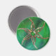 Une oeuvre abstraite en vert vif et en cuivre. Un bijou vert clair est entouré de lames d'herbe bordées de cuivre, agrémentées d'émeraudes étincelantes et d'étoiles oranges. Les fractales ondulantes et courbes de l'arrière - plan apparaissent en vert, marron et orange plus profond à l'intérieur du fil de cuivre du motif de la feuille.