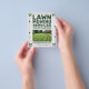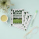 A clean & professional lawn mowing promotional flyer design featuring leaf scattered throughout the design and a customizable photo of a freshly cut green lawn. It may be suitable for people working in the landscaping sector, such as landscapers, lawn mowers, green space maintenance, etc., as well as for professional gardeners and lawn care services.