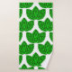 Dieses Handtuch-Set ist mit einem kalkgrünen Waschlappen, einem grünen Handtuch und einem Badehandtuch mit skandinavischem Design aus Blatttrios ausgestattet, das in drei Grüntönen wiederholt wird.