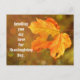 Pretty photo of an Autumn leaf with a tiny heart in it, is featured on this postcard for Thanksgiving Day. Front of the postcard reads, "Sending you my Love for Thanksgiving Day". The back of the postcard reads, "Though we are miles apart. I am keeping thoughts of you in my heart. Happy Thanksgiving Day". Great postcard to send to that special loved one when you can't spend Thanksgiving Day together!