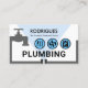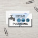 At the top lies your prestigious name. This is followed by a slogan caption with the business name "PLUMBING" near the base ; You can change both captions to suit your own service needs. Inside the water spray are three light blue plumber service icons.