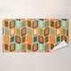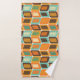 Dieses Set ist mit einem cremefarbenen Waschlappen, einem orangefarbenen Handtuch und einem Badehandtuch ausgestattet, das Mitte des Jahrhunderts in einem modernen, abgerundeten Rechteck angeordnet ist, das sich seitlich aneinander lehnt und in dem sich die Linien aus den 70er Jahren verbergen.