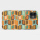 Dieses Handy-Gehäuse hat ein modernes Design von abgerundeten Rechtecken, die seitlich ausgerichtet sind, mit schiefen Rechtecken, die innen aus Linien in den Farben der 70er Jahre bestehen.