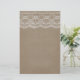 Schönes Hochzeitsdesign aus Shabby Chic mit beigefarbenem Lederhintergrund und dekorativem Spitzenakzent auf der Oberseite. Wunderschönes Shabby Chic-Design mit einer Kombination aus männlich und weiblich. Bitte beachten Sie, dass das Design nicht aus echtem Leder oder Spitzen besteht, sondern nur aus Foto. Die Farbe des Leders und der Spitze kann auf Ihr Hochzeitsfarbenthema abgestimmt werden. Kontaktieren Sie mich unter mshake5918@yahoo.com für kundenspezifische Farbdesigns ohne Aufpreis. Dieses individuelle Design kommt auch auf viele andere bereit, um Template-Produkte anpassen und kann auf viele andere Zazzle-Produkte, die Sie mögen, platziert werden. Folgen Sie dem unten stehenden Link, um die Erholung der Leather & Lace Wedding Produktkollektion zu sehen.