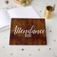 Ein brauner Lederhintergrund aus Imitaten hat einen stylischen, fett und dekorativen weißen Schriftart mit den Worten "Anwesenheitsliste" und einer Vorlage für das Datum Ihrer Veranstaltung oder Veranstaltung.