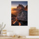 Epic mountain landscape with dramatic peaks and golden sunlight. Rock in the foreground with an inspirational message about environmental preservation. Perfect for nature lovers, trekking and mountaineering. A work that combines natural beauty with ecological awareness, ideal for decoration, posters and outdoor motivation.