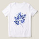 The artwork is described as a watercolor painting of blue leaves and branches with a textural effect.