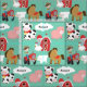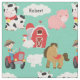 Gewebekinder sind Liebe, Eigenschaften ein Aquahintergrund mit verschiedenen Vieh sowie der Bauer, der einen roten Traktor fährt, eine Wolke, die Sie mit dem Namen Ihr Kindes besonders anfertigen können und eine rote Heuscheune und -silo gewillt. Kennzeichnet auch ein braunes Pferd, eine gepunktete Schwarzweiss-Kuh, ein rosa Schwein, ein weißes Lamm und ein Huhn!