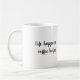 Hier ist eine Geschenkidee für alle Liebhaber von heißen Getränken. Eine Tasse mit den Worten "Das Leben geschieht, Kaffee hilft", sie mit ihrem Morgenkaffee inspirieren und zu motivieren. Einfache schwarze Typografie auf Weiß.