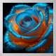 Lebendige blaue Rose mit Dewdrops im Kontrastverhä Poster