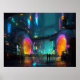 Lebendige Cyberpunk-Stadtlandschaft mit Bögen Poster