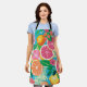 Eine helle Schürze mit lebendigen Zitrussscheiben, üppigen grünen Blättern und zarten tropischen Blumen. Die frische Farbpalette aus Rosa, Orange, Gelb und kühlen Blautönen bringt eine fröhliche, sommerliche Note in die Küche, beim Backen, Grillen und bei Geschenkanlässen. Ideal für Frauen, die farbenfrohe, aufmunternde und wunderschön illustrierte Designs lieben, die Freude in die alltägliche kulinarische Kreativität bringen.