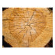 Reich mit Textur, ein abgeschnittenes Log zeigt seine Ringe an. Wie alt war dieser Baum? Ein perfekter Akzent für eine Hütte, eine Holzdekoration oder für einen Naturliebhaber. Eine schöne, goldgelbe Butterfarbe.