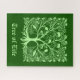 Puzzle in einem stilisierten Ast und Blume, Baum des Lebensdesigns in hellgrün auf einem dunkelgrünen, piniengrünen Hintergrund