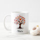 Diese personalisierte Kaffee-Tasse zeigt den Lebensbaum mit herzförmigen Blätter. Der Kofferraum ist strukturiert, um Stärke zu zeigen. Das Design erinnert an Gefühle, Wärme, Einheit, Liebe.