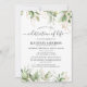 Die personalisierte Beerdigungsmesse ist ein idealer Weg, um die Verstorbenen zu ehren und ihr Leben in respektvoller und würdevoller Weise zu feiern. Mit eleganten Aquarellfarben grünen botanischen Eukalyptus-Blätter, goldenen Blumenakzenten und einer Feier der Lebensvorlage, die leicht zu personalisieren ist.